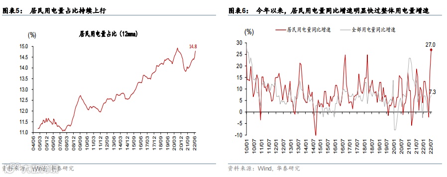 第三,居民用电占比结构性上升,推升总体用电量、尤其是尖峰负荷需求。