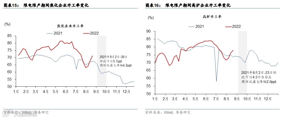 我们从两个维度观察上一轮限电期间工业生产的收缩幅度和行业分布:
