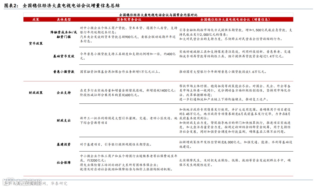 4)更令人瞩目的是,5 月 25 日国务院召开“全国稳住经济大盘”电视电话会议,李克强总理发表重要讲话(具体与国常会内容对比,请参见图表 2)。