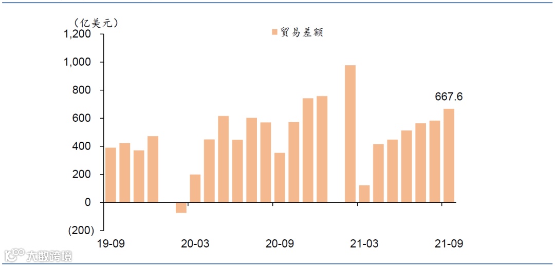 9月份我国贸易顺差668亿美元(前值583亿美元)、今年前三季度累计顺差4292.5亿美元(去年9月353亿美元、前三季度累计3166亿美元)。出口增速回升、进口增速回落,贸易顺差扩大。9月份总贸易顺差为今年初以来各月最高值;其中对美国顺差(420亿美元)也是去年初以来最高值。