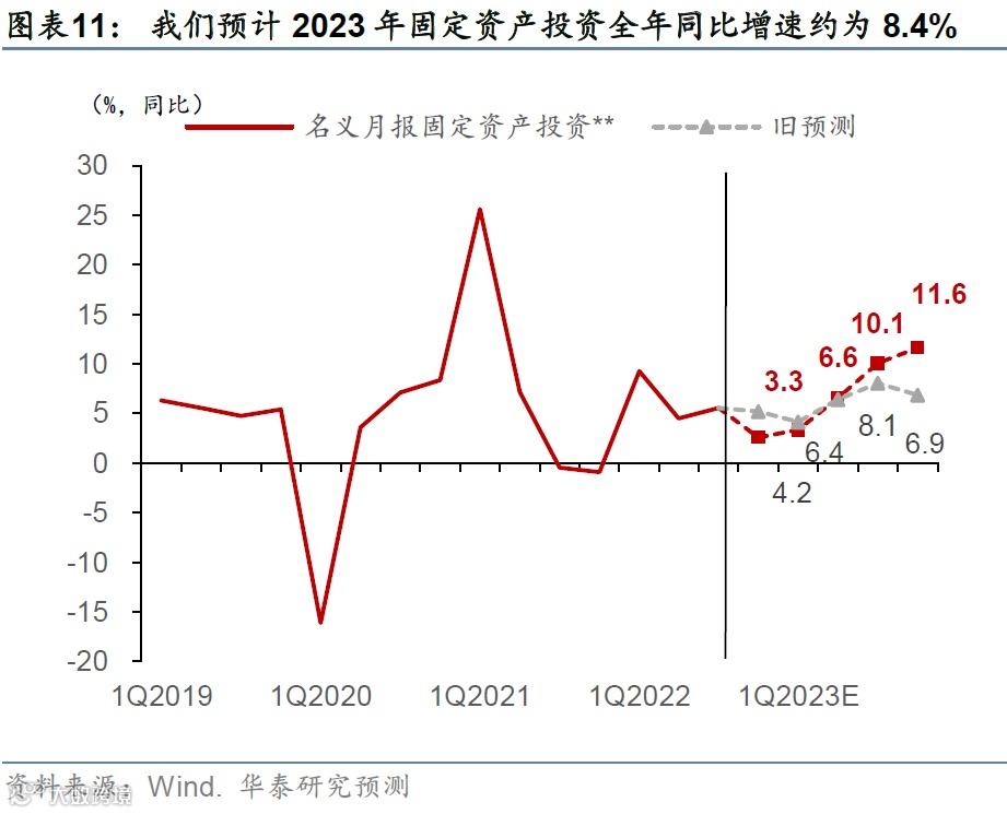 我们维持2023年实际GDP同比增长5.8%的预测不变,但明年增长路径将较此前预产期更为“陡峭”。同时,我们2022年4季度实际GDP增速预测下调至1.6%,隐含2022年全年增速2.6%。