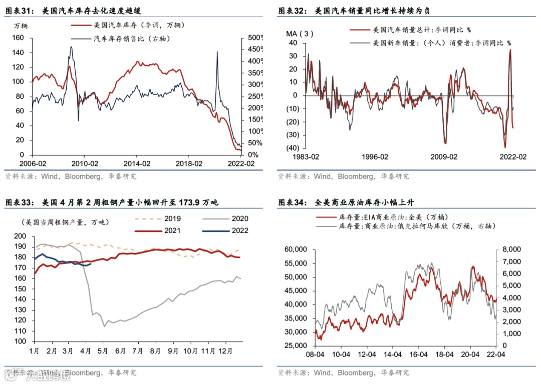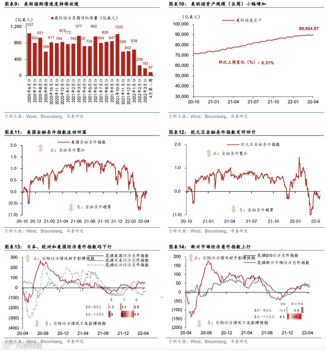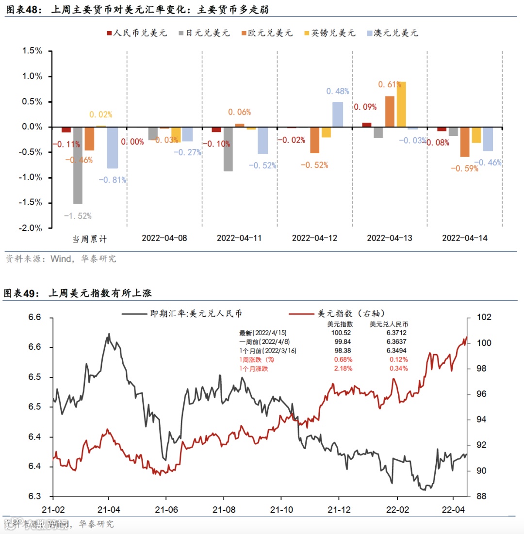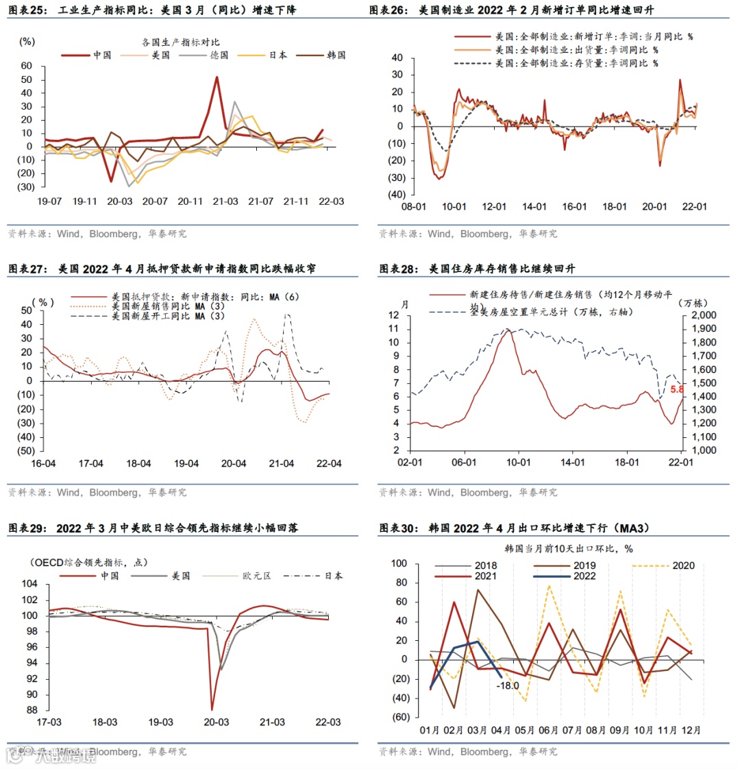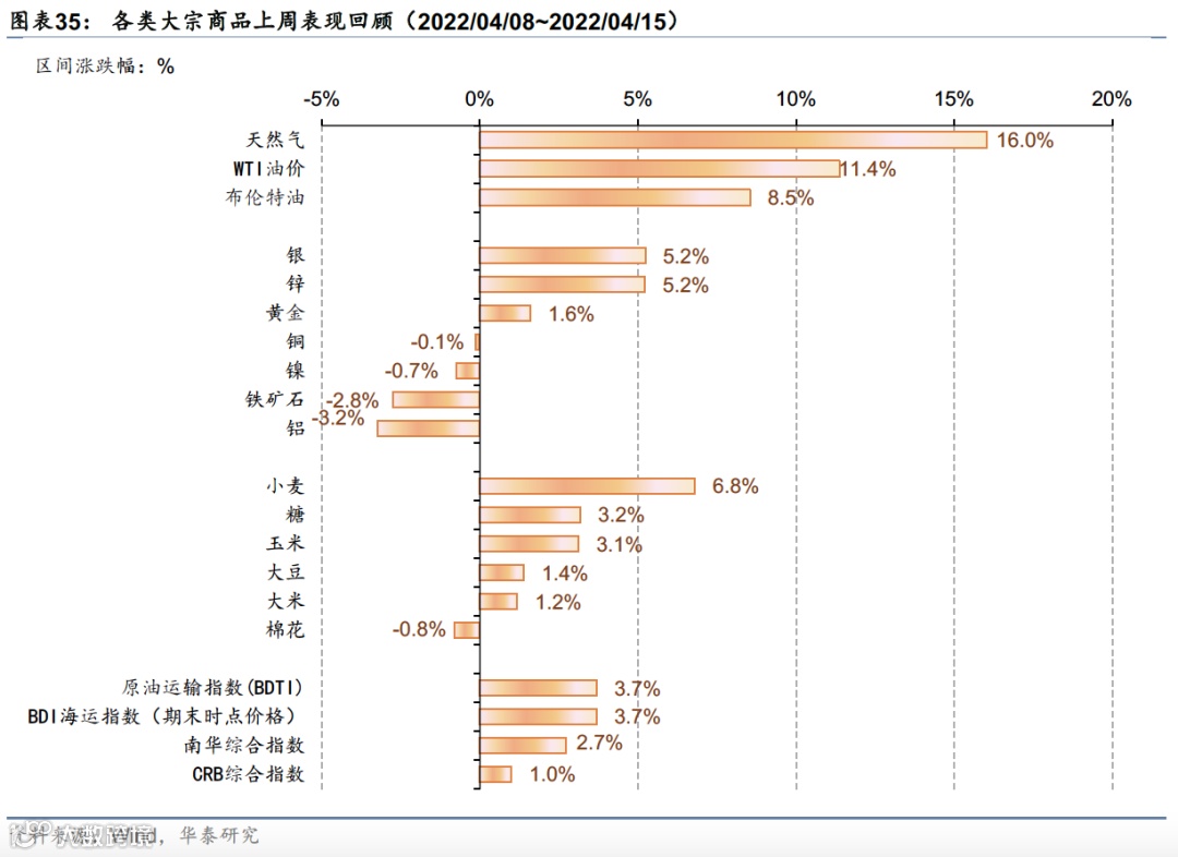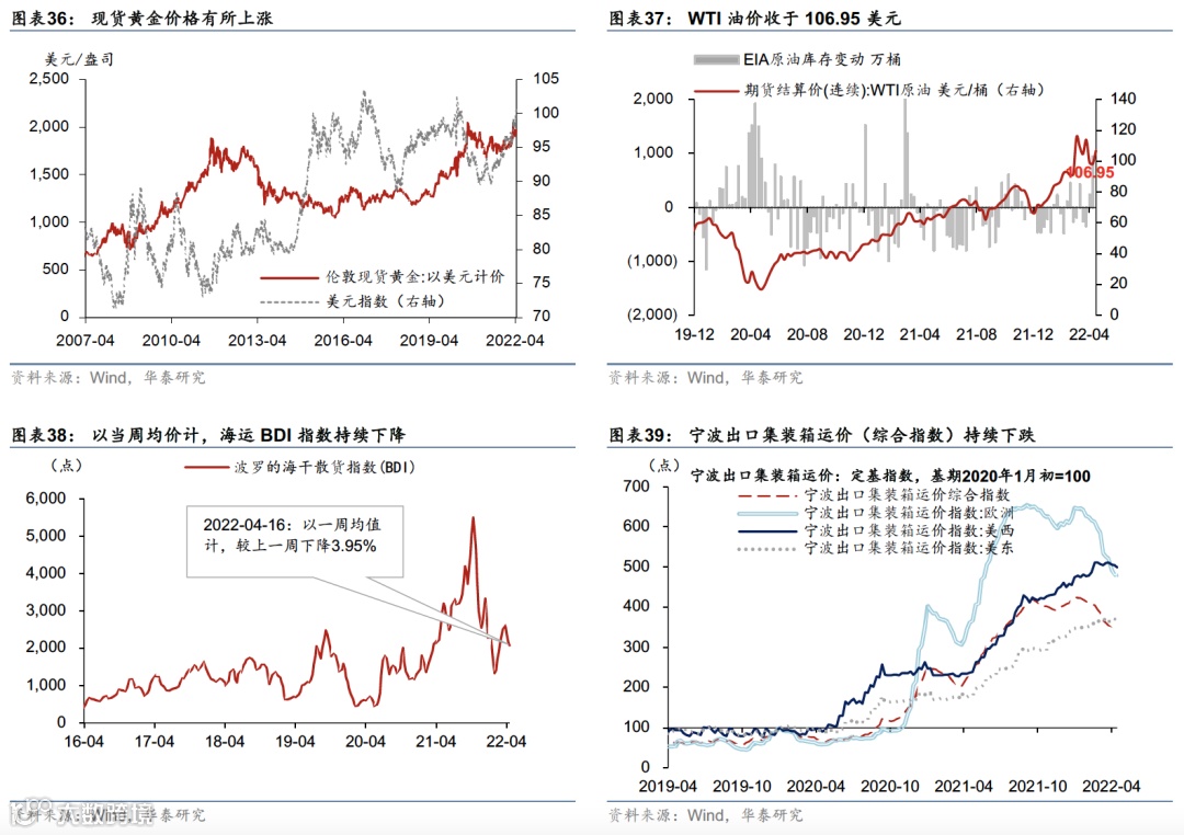 价格指标和资产表现:美元继续走强、美债名义及真实利率继续上行,能源价格大幅反弹。美元指数一周再涨0.7%、突破100;在欧美宣布制裁俄罗斯能源出口后的一周,能源及农产品价格再度上涨,布伦特和WTI油价均涨至107美元左右(一周分别涨8.5%和11.4%),大宗商品普遍走强。原油运价指数近一周(均价)上涨12%、近一个月上涨近25%;但中国出口集装箱运价指数继续下跌、一周跌幅2.7%,近一个月下跌7.4%。美股、亚太股指大多下跌,纳斯达克综指一周下跌2.6%、两周跌幅近6%。