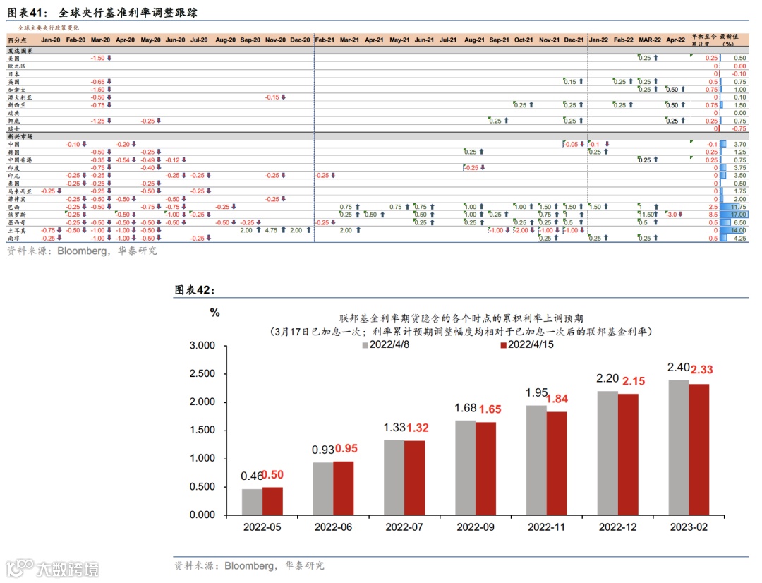美国3月零售消费数据显示“报复性”出行和其他体验式服务消费——餐饮/酒吧/商场/加油站等是目前最强的消费门类、或进一步推升通胀粘性和短期劳工需求,短期内,美联储更加没有暂缓加息节奏的理由。联邦基金利率期货隐含5/6/7月加息预期与一周前基本持平——主流预期维持在5/6月各加息50bp;预期今年总共加息240bp,较一周前小幅回落。