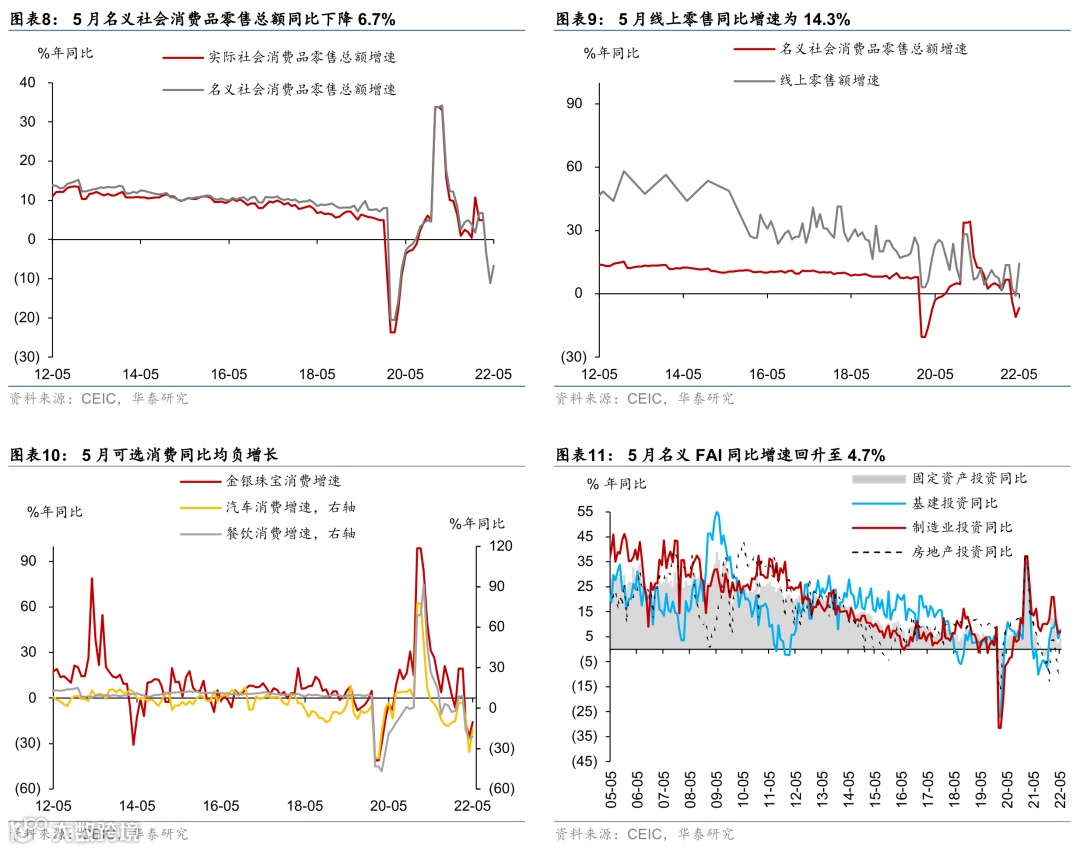 【华泰宏观】 生产消费略恢复、地产指标仍堪忧 | 2022年5月经济活动数据点评