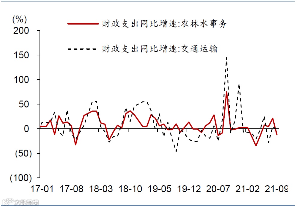 财政支出增速再度放缓。9月一般公共预算/政府性基金支出同比增速分为为-5.3%/-15.1%,对比8月的6.2%/-9.7%均有明显下降。分类来看,9月一般公共预算支出中,基建相关支出(农林水事务、交通运输)均有所下降,但主要是由于去年同期基数太高。另一方面,在总需求增速放缓的大环境下,财政支出相当乏力,教育、科学技术、卫生健康、民生等领域的财政支出同比增速普遍放缓,但社保支出增速有所反弹(图表7)。