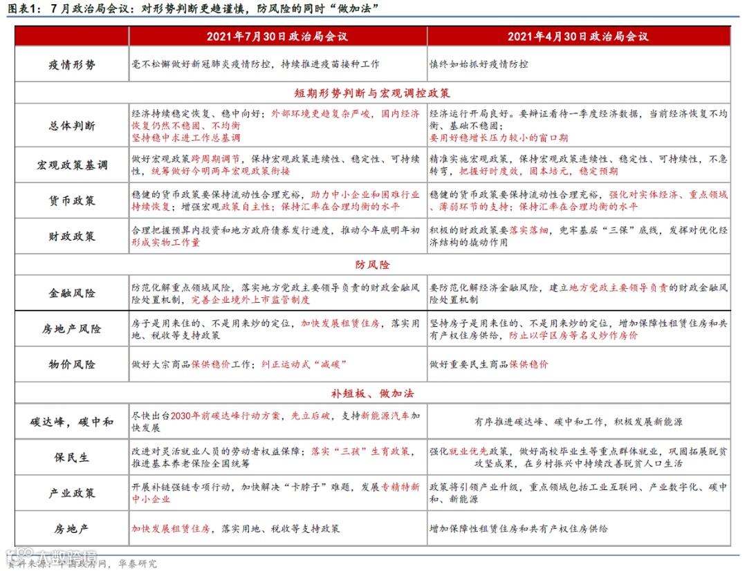 相对4月政治局会议,7月对形势判断更趋谨慎。未再提“稳增长压力较小窗口期”,表示外部环境更趋复杂严峻,国内经济恢复仍然不稳固、不均衡。