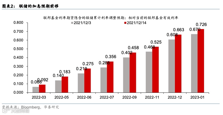 我们认为美联储本次议息对通胀的表述,可能更多的是修正此前的判断和承认已经发生的事实——即转为更明确承认通胀(部分)是有“持续性”的(consistent)。联储今年上半年一直坚持通胀是“暂时性”的、主要受短期供给因素影响的判断,维持其极度鸽派立场;但随着通胀形势继续演进、通胀率远远超过美联储此前的模型预判和平均通胀目标值,联储逐渐开始“修正”之前的判断失误。11月底鲍威尔的讲话意味着联储转向更为中性的货币政策立场、预留更大的政策空间。自11月议息以来,美国通胀环比涨幅再度回升,11月美国CPI同比增速已接近7%,TIPS隐含5/10年期通胀预期在11月中旬一度达到3.17%/2.73%的新高。虽然Omicron毒株对通胀预期产生冲击,但不改明年表观通胀仍难以回归至联储目标之下的事实。