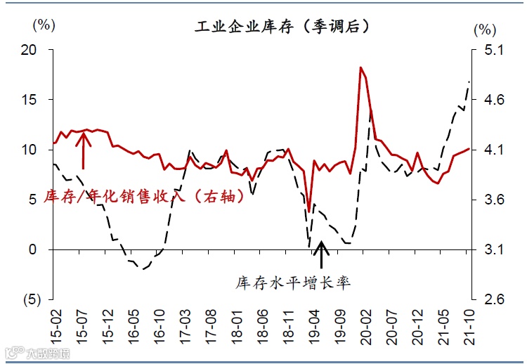 3)芯片短缺缓解,汽车和手机等行业收入增长继续回升,但盈利有待进一步恢复。以两年复合增速看,10月汽车制造业收入增速由上月的0.4%上升至2.0%,利润跌幅从上月的21.4%大幅收窄至1.2%,但计算机和通信设备制造业利润增速从上月的0.5%小幅下行至-0.7%。