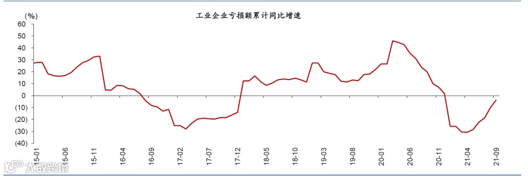 图表11:9月工业企业亏损额同比跌幅继续缩小