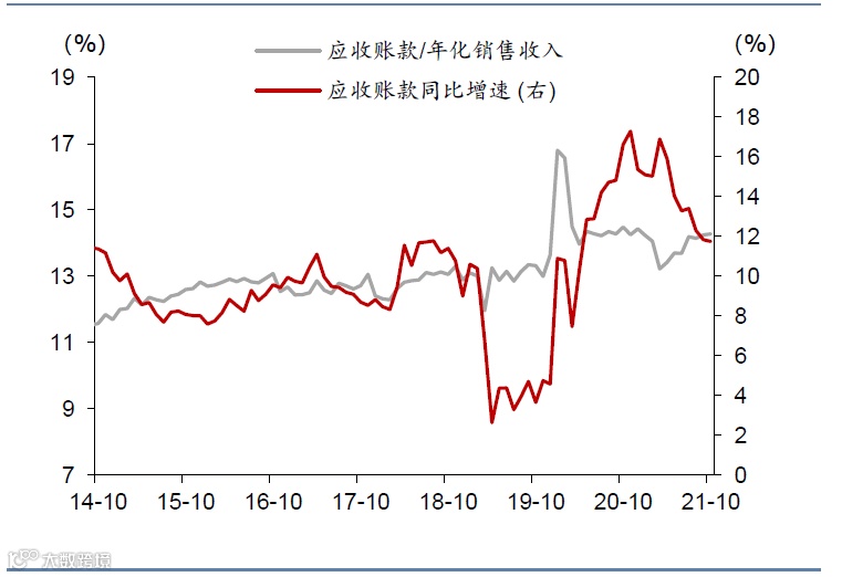 图表9:10月工业企业应收账款增速持平