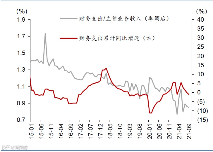 图表10:9月工业企业财务费用占比下行