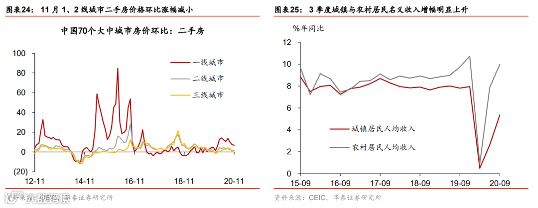 3)流动性环境是否会进一步宽松?总体而言,当前货币政策对再通胀有较高的“容忍度”,但流动性环境相对年底前进一步宽松也较为困难。往前看,货币政策可能会延续“温和退出”的基调,名义利率可能会有所上行。