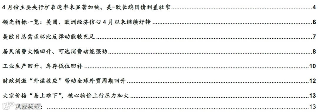 4月份主要央行扩表速率未显著加快、美-欧长端国债利差收窄