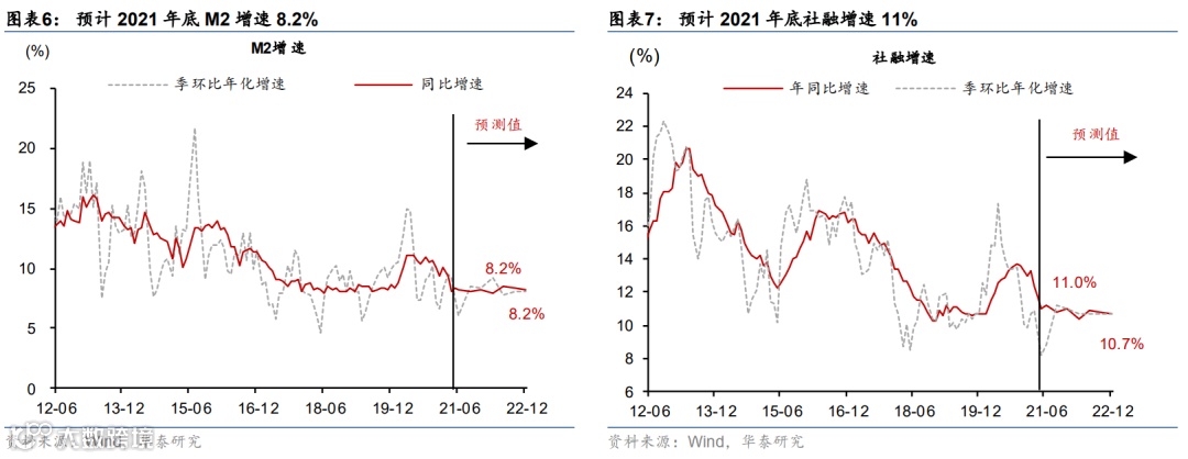 在近期的路演和交流中,我们与客户反复讨论到对货币政策“松”和“紧”的理解。从政策对实体经济的影响判断,货币政策所谓“收紧”和“放松”可能更多指向“广义流动性”的概念,简言之、即社融和M2的环比增速。鉴于环比增长领先同比增速变化,而货币总量变化领先总需求变化。而很多时候,市场对政策“松”与“紧”的判断更多集中在对短端流动性、资金价格的描述。需要澄清的是,我们这里指“环比宽松”,更多指向广义的流动性变化、及对内需增长与通胀有前瞻意义的、社融及货币总量的变化。