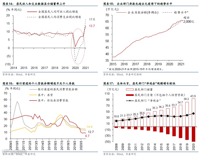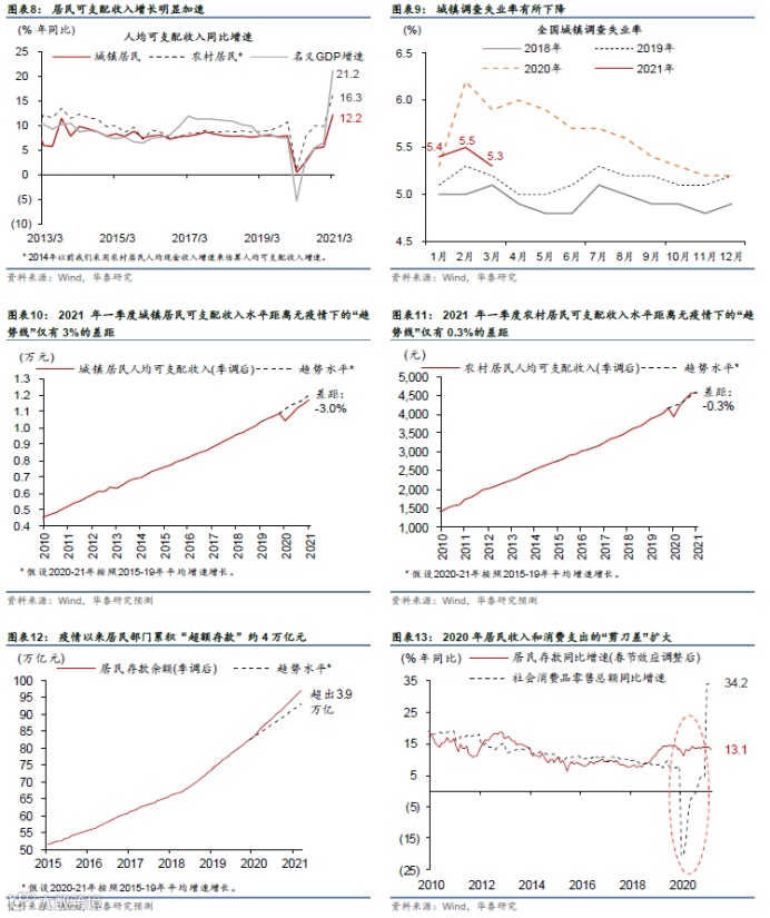 1)居民部门收入增长明显加速,同时前期积累的大量超额储蓄有待释放。