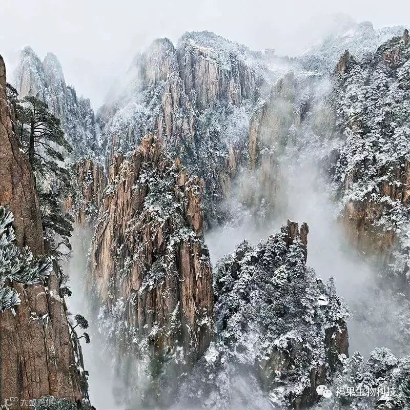 如果冬季去黄山,不止有云海,还可见雾凇,比之东北的雾凇更有中国画的意境,远处云雾腾腾的云海,近处晶莹剔透的松枝冰挂,冰天雪地,像极了冰雪奇缘的世界。