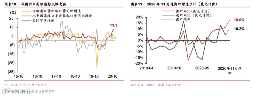 美元计价,预计11月出口同比+18%、进口同比+10.2%