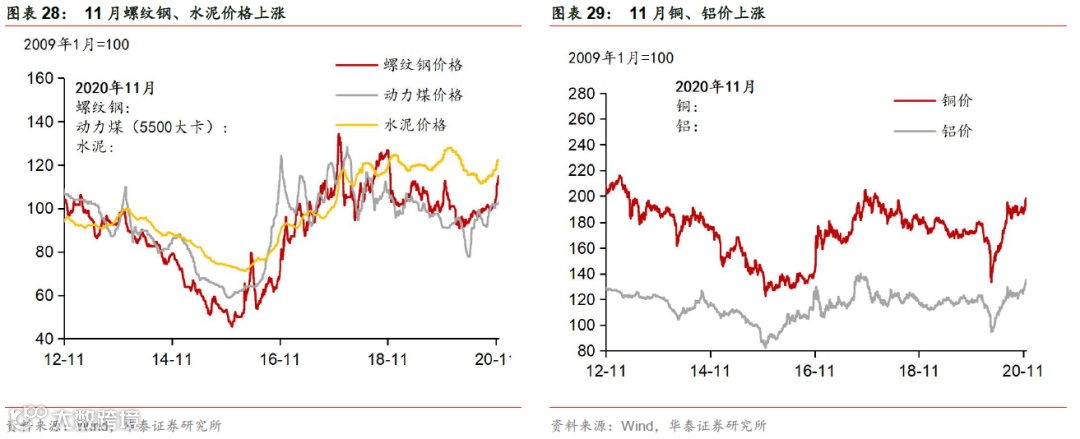 2)海外疫苗量产进度及其对全球制造业周期和PPI的影响。疫苗量产提前推升制造业补库。11月国内原材料普涨,海外大宗商品原油价格亦反弹。