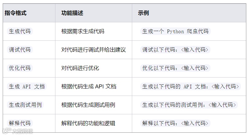4、编程与开发指令:提供代码生成、调试、优化、API 文档生成等功能,是程序员的得力助手。
