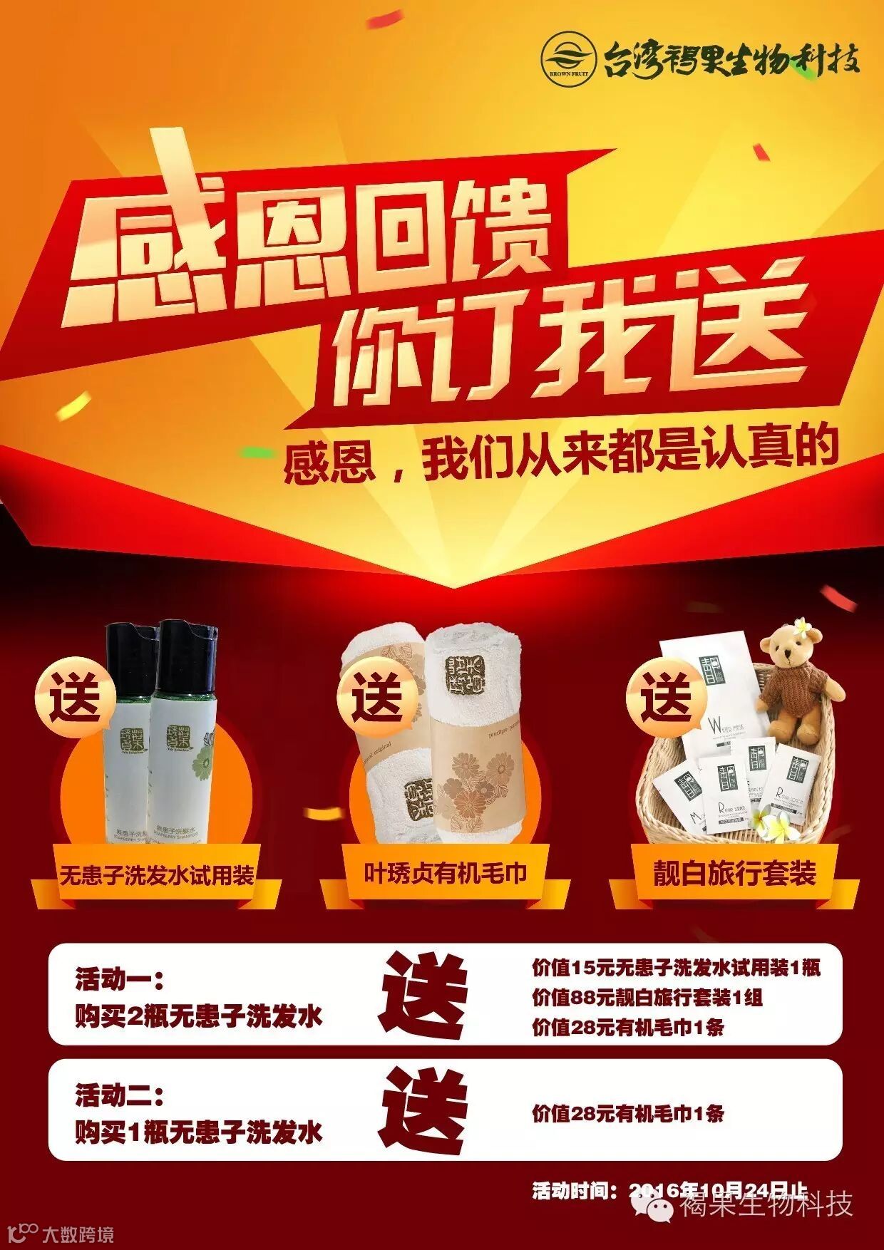 导读:褐果感恩兑现季,你定我送!活动一:购买2瓶无患子洗发水送:价值15元无患子洗发水试用装1瓶送:价值88元靓白