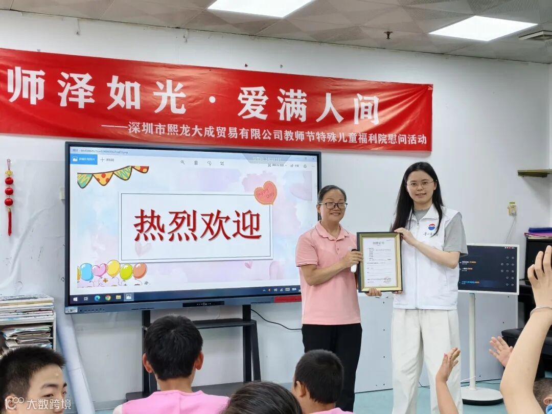 活动当天,熙龙大成员工代表为福利院教师们送上精心准备的鲜花与慰问品,并向他们致以崇高敬意。“特殊教育是一项需要极大耐心与爱心的事业,老师们不仅是知识的传递者,更是孩子们心灵的守护者。”公司员工代表在致辞中表示,“我们希望通过这次活动,让更多人关注特殊教育群体,也向默默奉献的教师们表达感谢。”