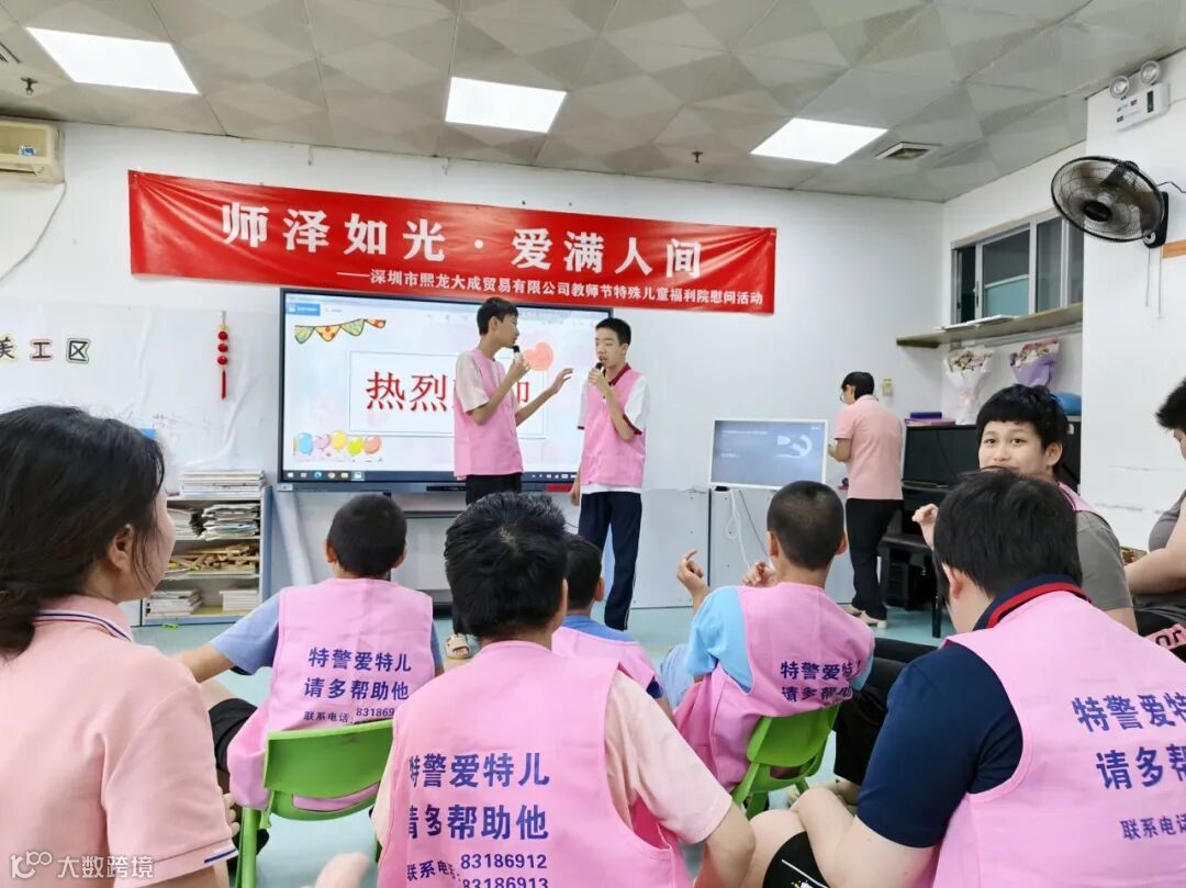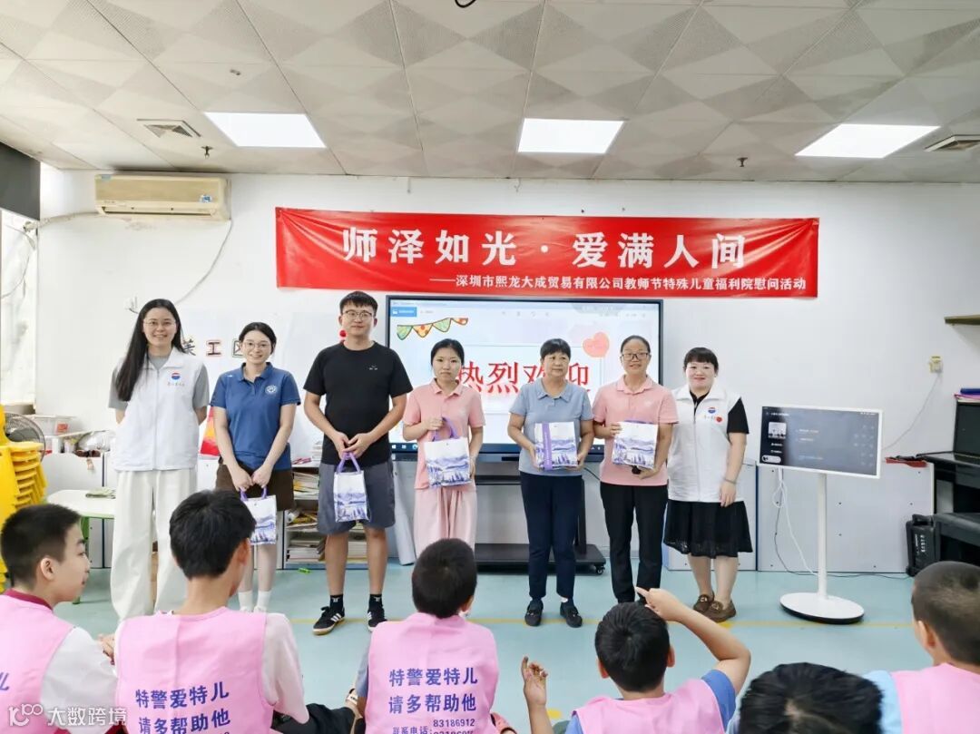 2025年9月10日,深圳市熙龙大成贸易有限公司组织员工代表走进民爱特殊儿童福利院,开展教师节公益活动,为长期坚守在特殊教育一线的教师们送上节日祝福,并与孩子们共同完成了一场充满温情的互动表演,用实际行动诠释茅台社会责任。