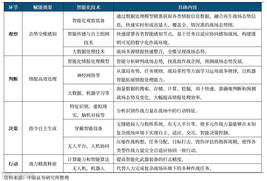 表3 军事智能化在“OODA”循环中的赋能