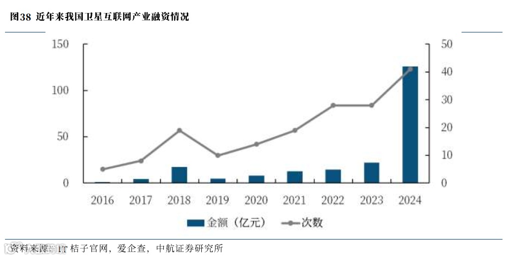 2024年我国卫星互联网产业融资事件超过40起,融资金额超过100亿元,创历史峰值。这一数据较2023年增长显著,显示出政策红利与市场热情形成共振。