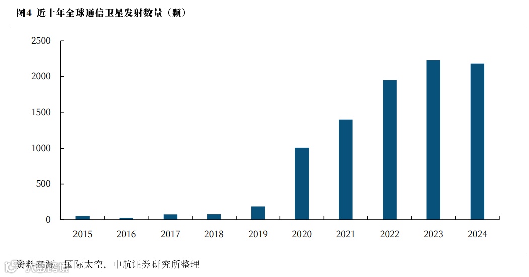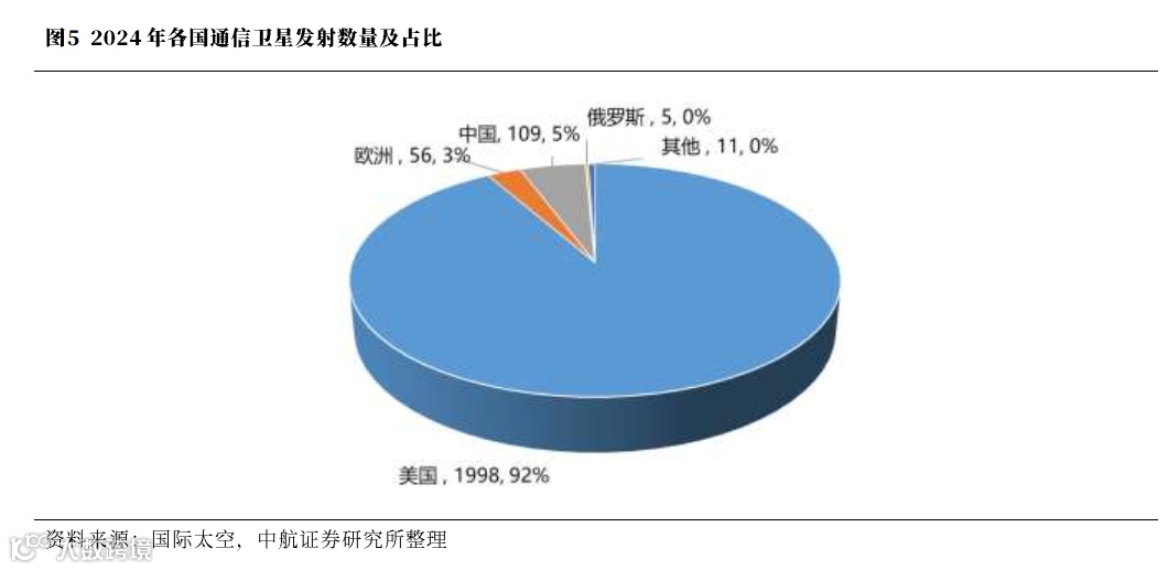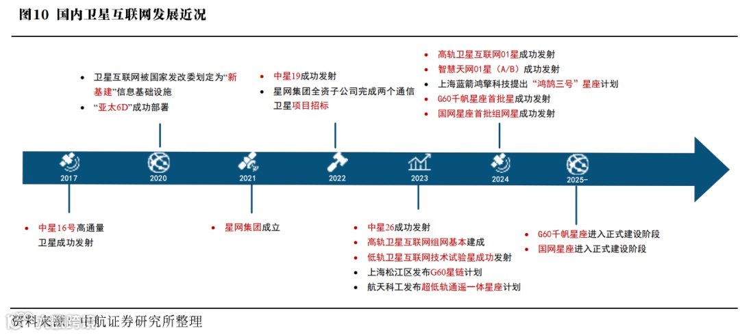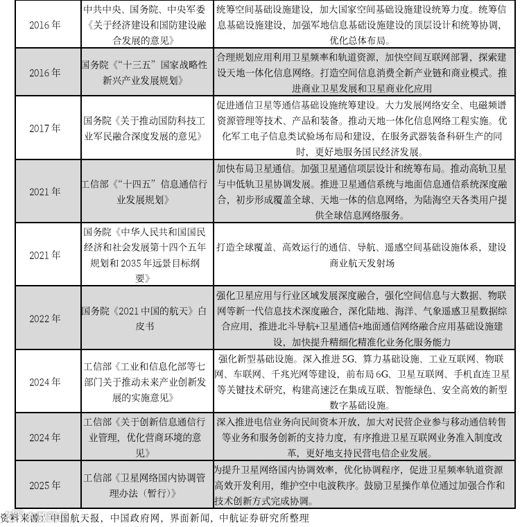 同时,2023年12月的中央经济工作会议首次提及商业航天,明确指出了包括生物制造、低空经济、商业航天在内的战略性新兴产业的发展重点;2024年政府工作报告将商业航天纳入新兴产业布局;2025年政府工作报告中提出推动商业航天、低空经济等新兴产业安全健康发展。作为6G技术和数字经济新基建的核心组成部分,以卫星互联网为代表的卫星通信产业将在推动新质生产力发展方面发挥着关键作用。