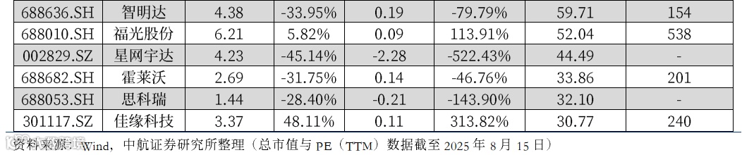 板块的估值逻辑目前仍以主题预期主导,业绩兑现尚未成为定价核心。当前,中航证券卫星互联网行业指数市盈率PE(TTM)处于历史最高分位附近。从产业链上主要的上市公司业绩以及估值情况来看,当前板块大部分上市公司估值偏高,而从收入与利润端并没有出现明显的增长拐点,反映投资者更关注长期战略价值而非短期盈利。这种估值结构的支撑点在于低轨卫星部署的加速推进、手机等消费端直连卫星的快速拓展、以及出海合作突破(如千帆星座签约巴西、泰国提供物联网服务等)等。