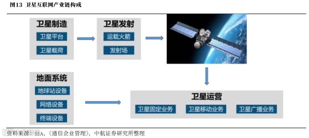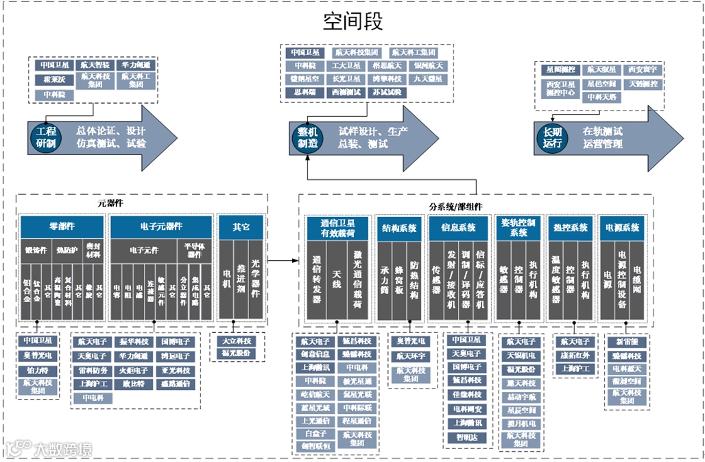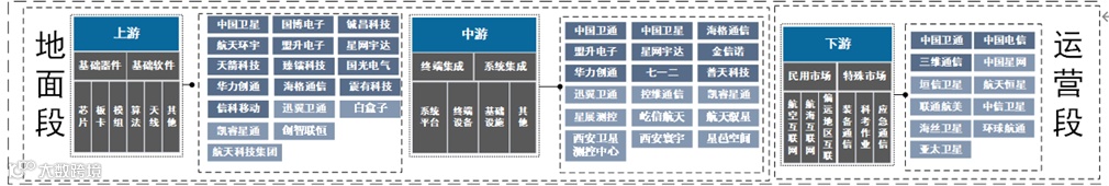 卫星互联网产业链各环节参与企业情况具体如下图所示。