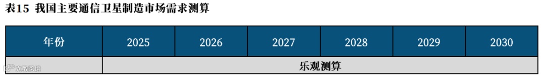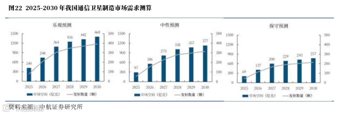 综合我们对我国2025-2030年卫星通信各细分领域市场的测算结果,有如下结论: