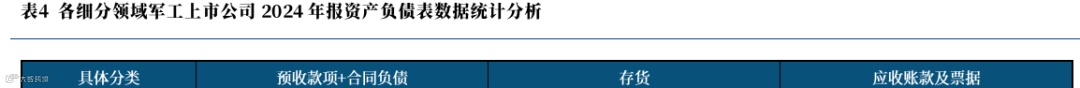 同时,我们根据具有数据可比性的核心军工上市公司年报的资产负债表统计,得到几个重要表现: