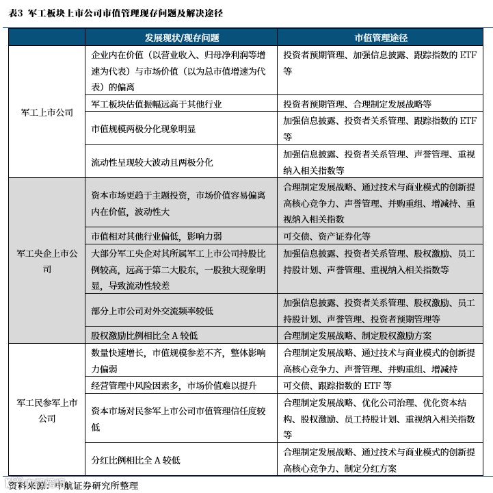 综上,我们针对军工行业上市公司在市值管理方面存在的问题,结合具体市值管理途径,给出如下总结。
