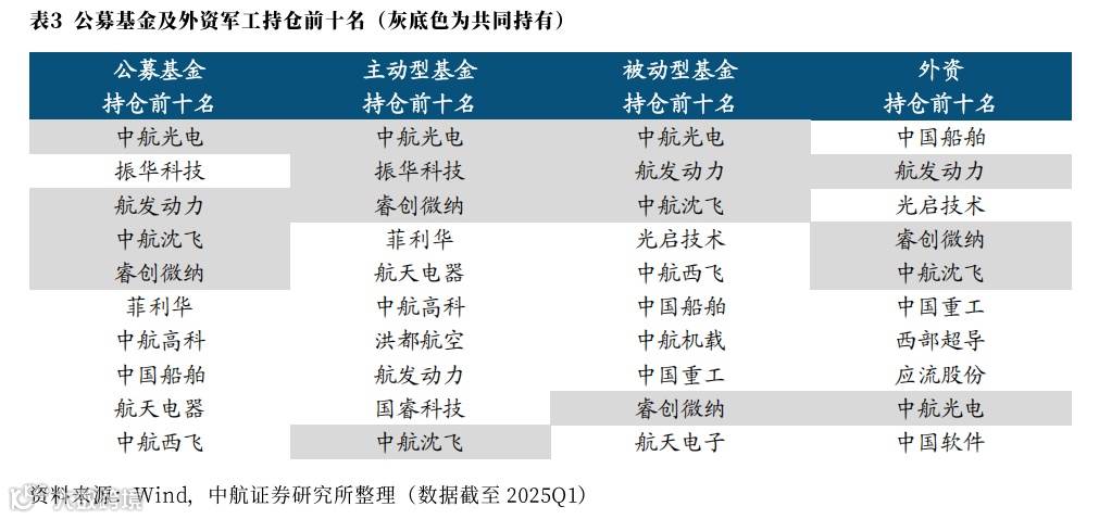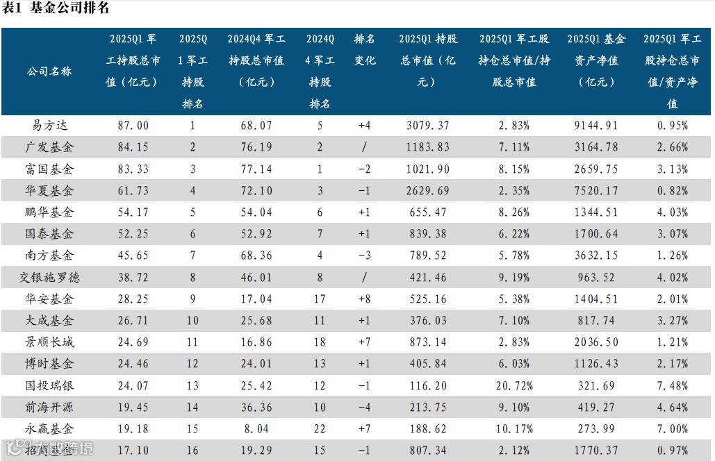 二、2025Q1军工行业持仓分析