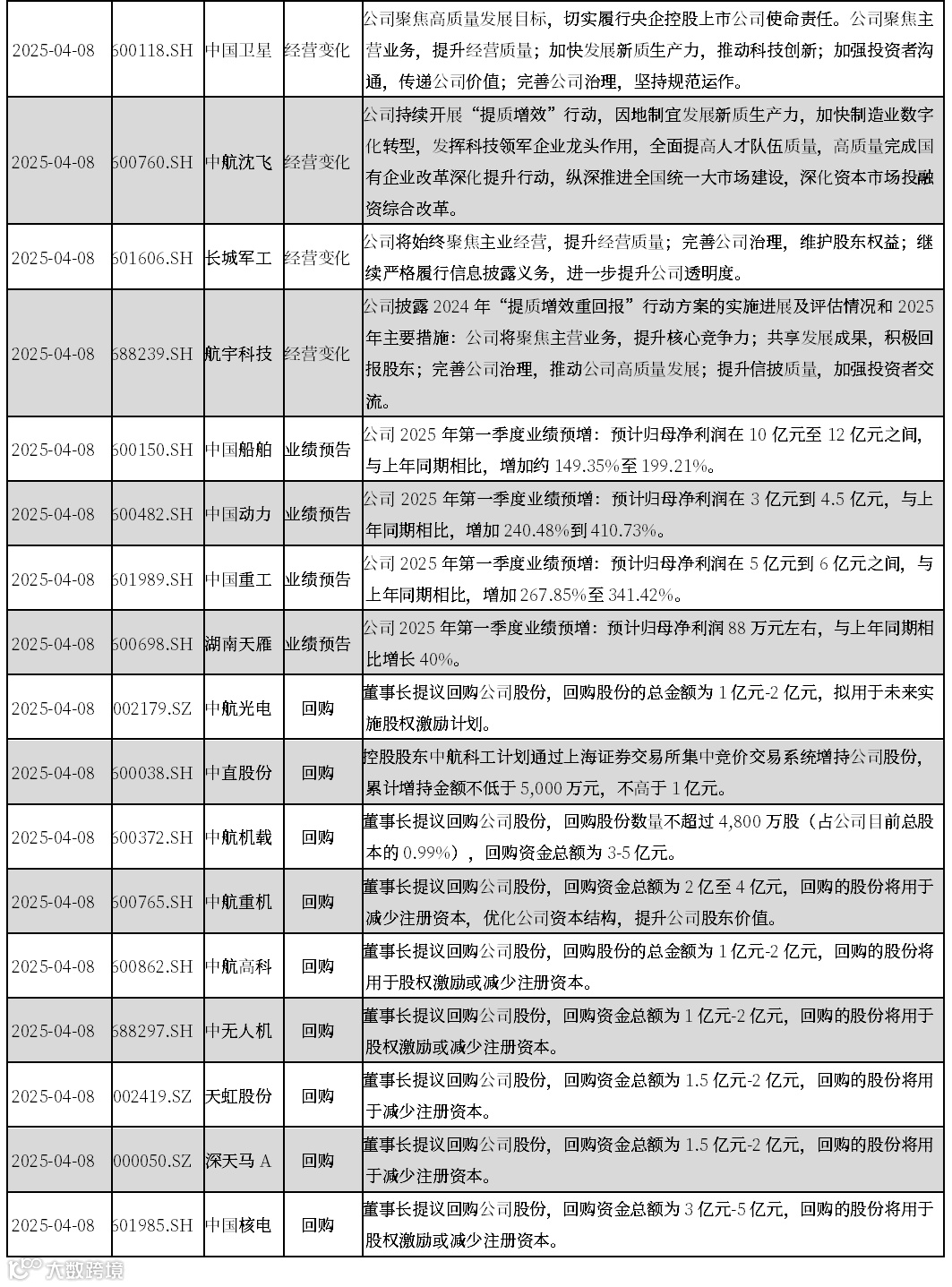 1、多家军工央企及军工上市公司将积极采用市值管理举措应对市场环境波动