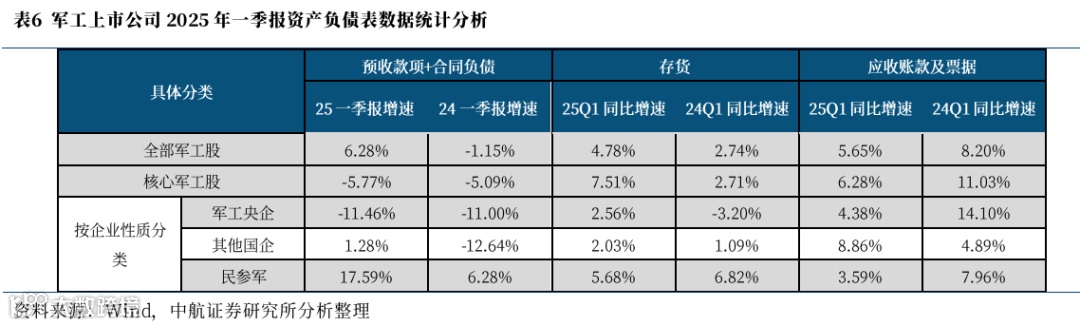 同时,2025年一季度军工上市公司的财务数据基本维持了2024年的表现,即: