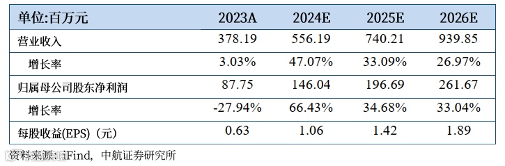 基于以上观点,我们预计公司2024-2026年的营业收入分别为5.56亿元、7.40亿元、9.40亿元,归母净利润分别为1.46亿元、1.97亿元、2.62亿元,EPS分别为1.06元、1.42元、1.89元,维持“买入”评级,2024年10月24日收盘价33.72元,对应2024-2026年PE分别为32倍、24倍、18倍。