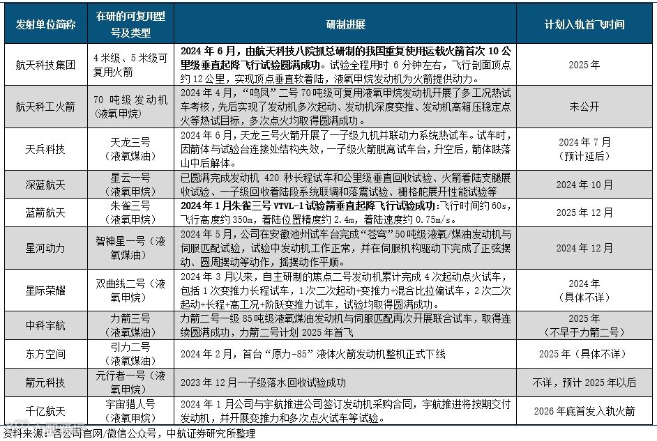 进入2024年,我国多个公司开展VTVL火箭试验,进展较顺利。具体包括: