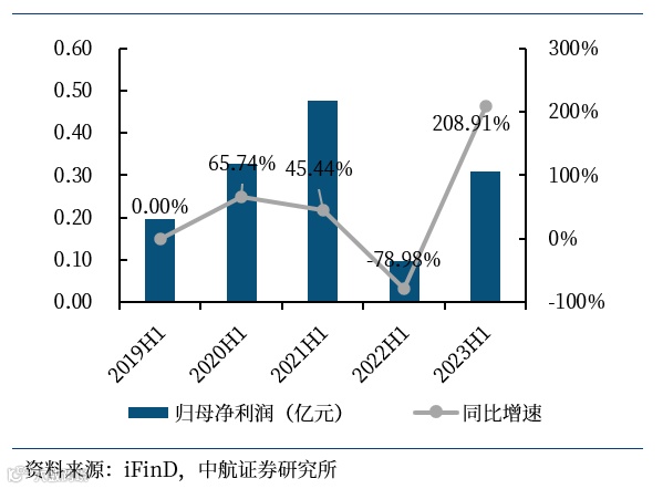 图2 公司2023H1归母净利润及增速(单位:亿元;%)
