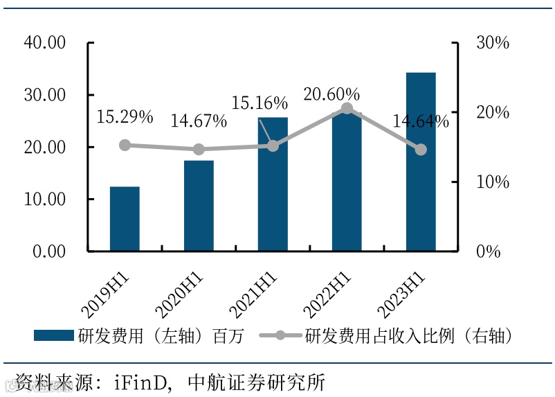 图6 公司2023H1研发投入和占营收比例(单位:百万元;%)