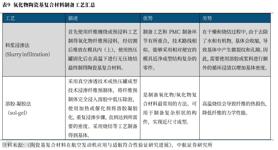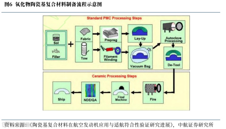 2、氧化物基陶瓷基制备工艺:沿用PMC制备工艺,成本控制和近净成型方面具有明显优势