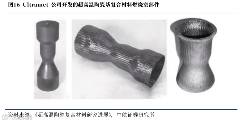 目前,Ultramet公司开发的燃烧室与喷管等,已完成美国国家航空航天局液体火箭发动机2400℃的测试考核,且使用的RMI工艺制备周期短、成本低适合商业化生产。我们认为,超高温陶瓷基复合材料能够凭借制备技术的通用性和优良物化特性参与到新一阶段的航天热防护结构的研发当中。