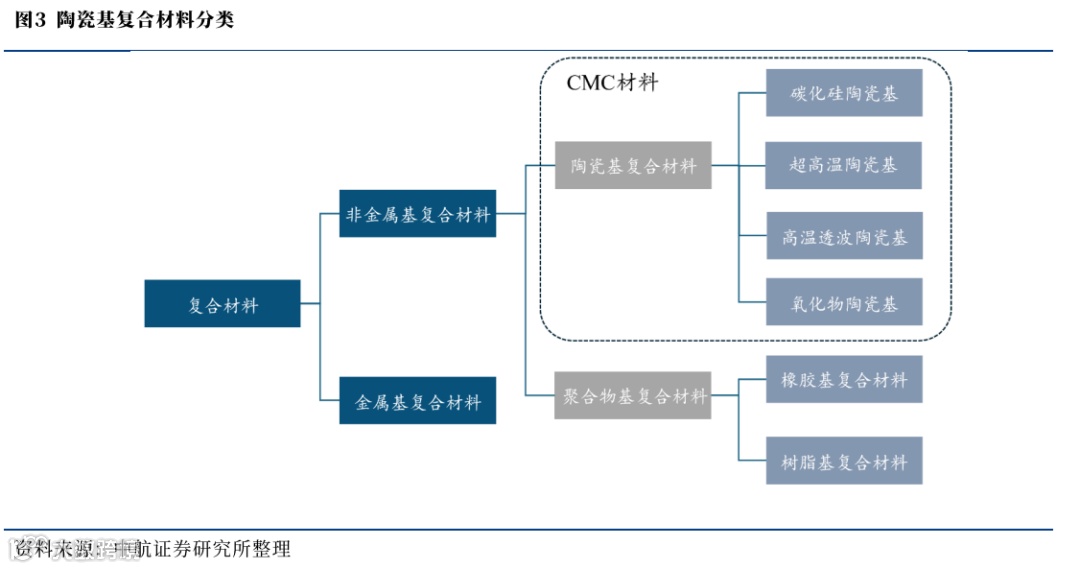陶瓷基复合材料根据基材类型可以分为碳化硅陶瓷基、氧化物陶瓷基、超高温陶瓷基和高温透波陶瓷基四种。其中碳化硅陶瓷基和超高温陶瓷基复合材料较其他两种有更好的耐高温性能因此终端应用的热端部件服役环境也更为苛刻。
