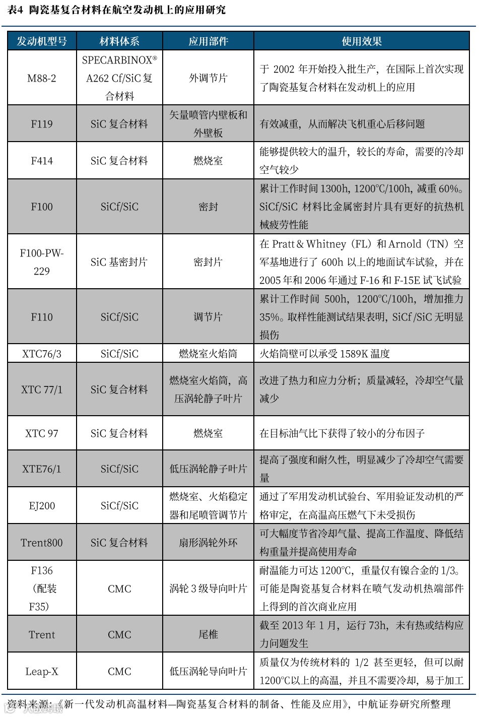 (一)航空领域应用:耐高温能力升级显著提升航发性能