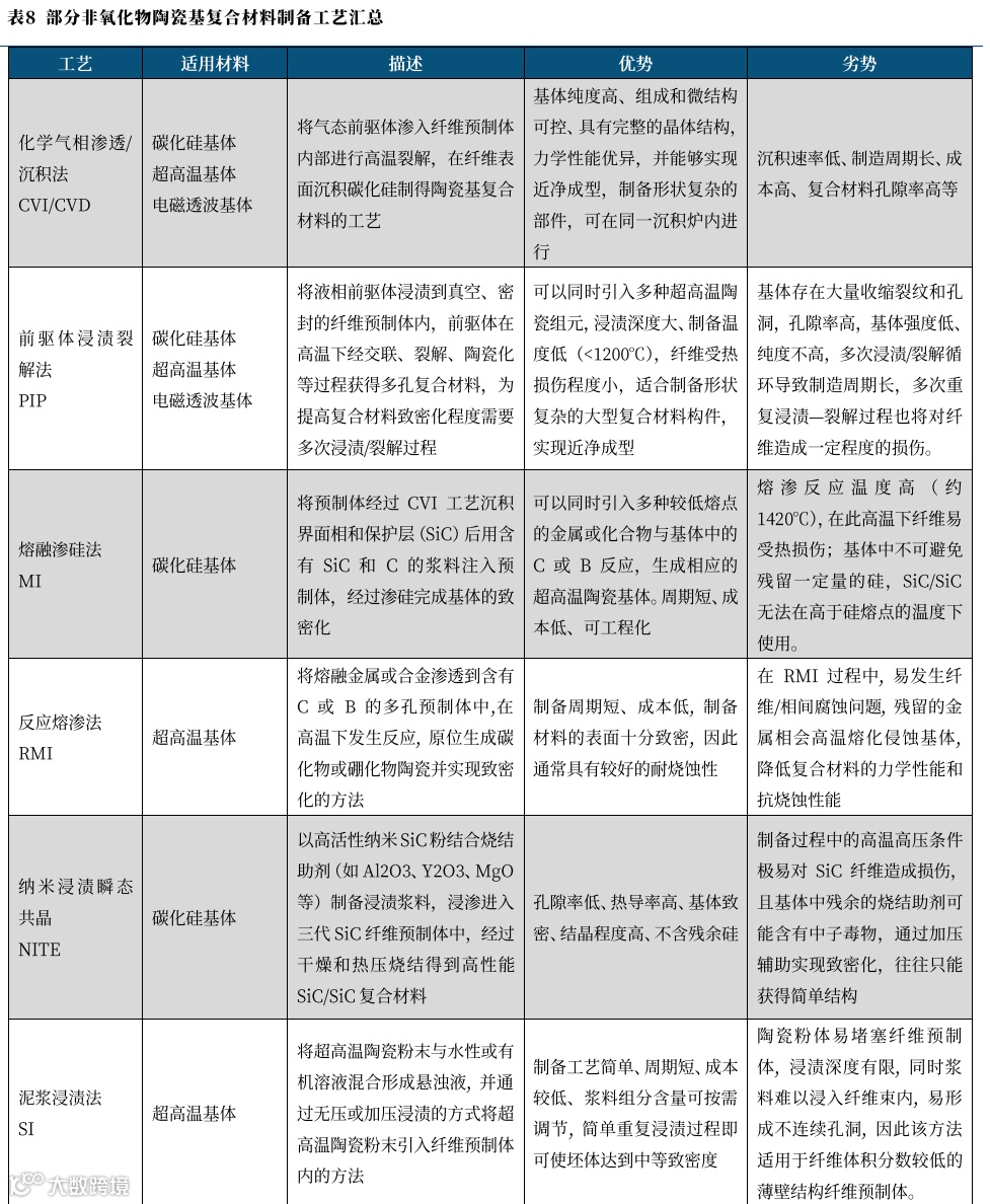 (五)制备工艺:非氧化物基体工艺众多,氧化物基体工艺与PMC制备工艺相似