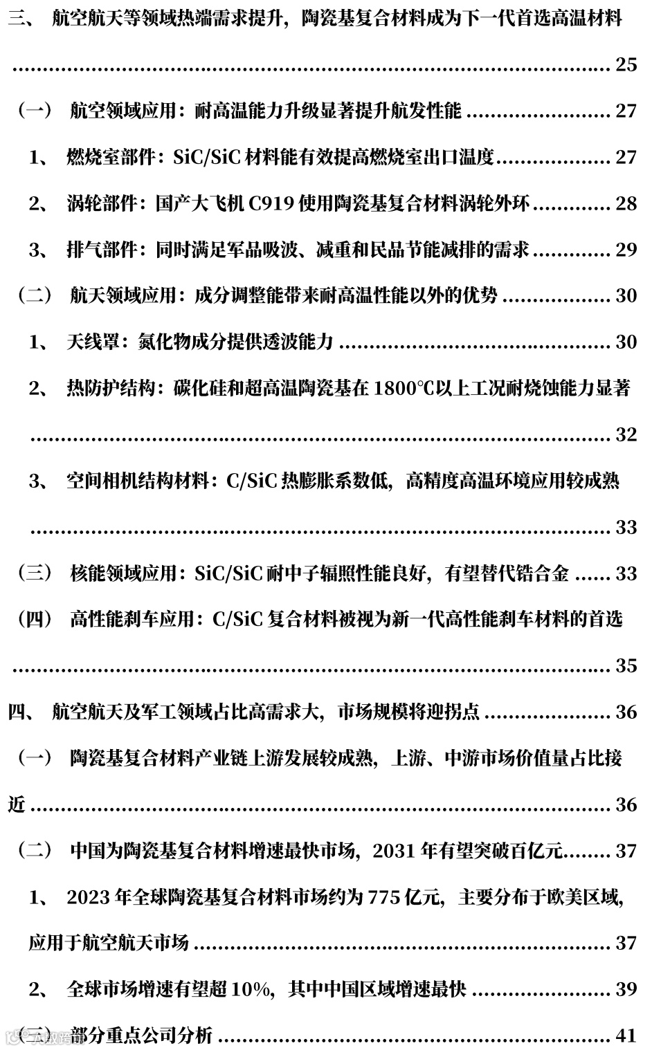 🔷 陶瓷基复合材料(CMC)具备优良的性能,是下一代首选高温材料
