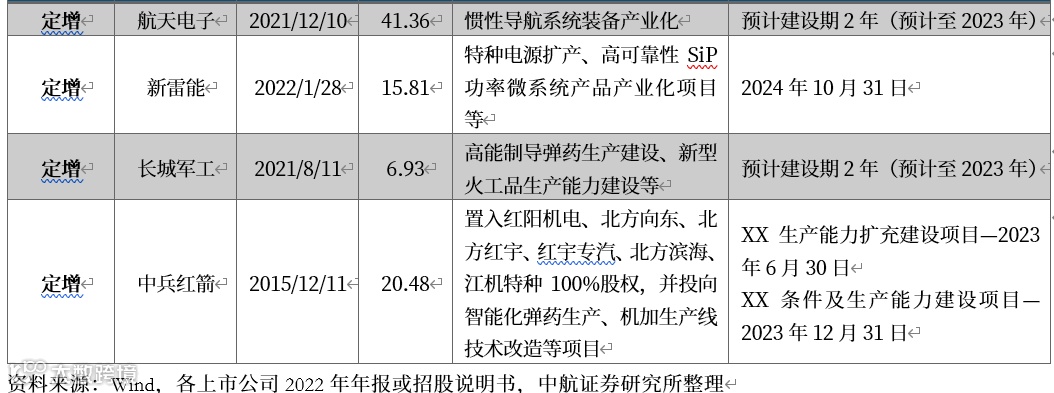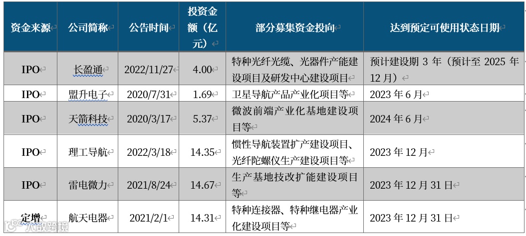 图10 近年来部分导弹企业募集资金扩产规模及最新进度