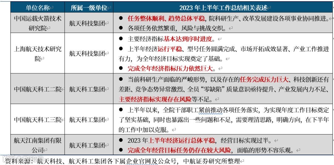 3. 多个航天央企下属“链长”单位在上半年工作总结会上的发言,反映出航天产业的下游需求仍然保持在较高水平,同时2023年下半年任务完成量有望超过上半年,相关产业链中上游企业收入业绩有望逐个季度环比改善;
