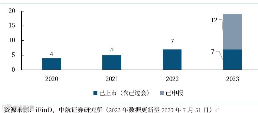 3. 增量资金有限的情况下,大多在低位的“次新股”可能存在短期的系统性机会。当前,在航天产业高景气下,航天企业正在持续上市。2023年以来,截至8月17日,航天环宇、国科军工、航天南湖、芯动联科以及司南导航等5家航天企业完成IPO(相关上市公司具体投资逻辑分析可以关注中航证券2023年军工上市公司点评系列)。另外,国科天成、万方科技2家航天企业也均已过会。